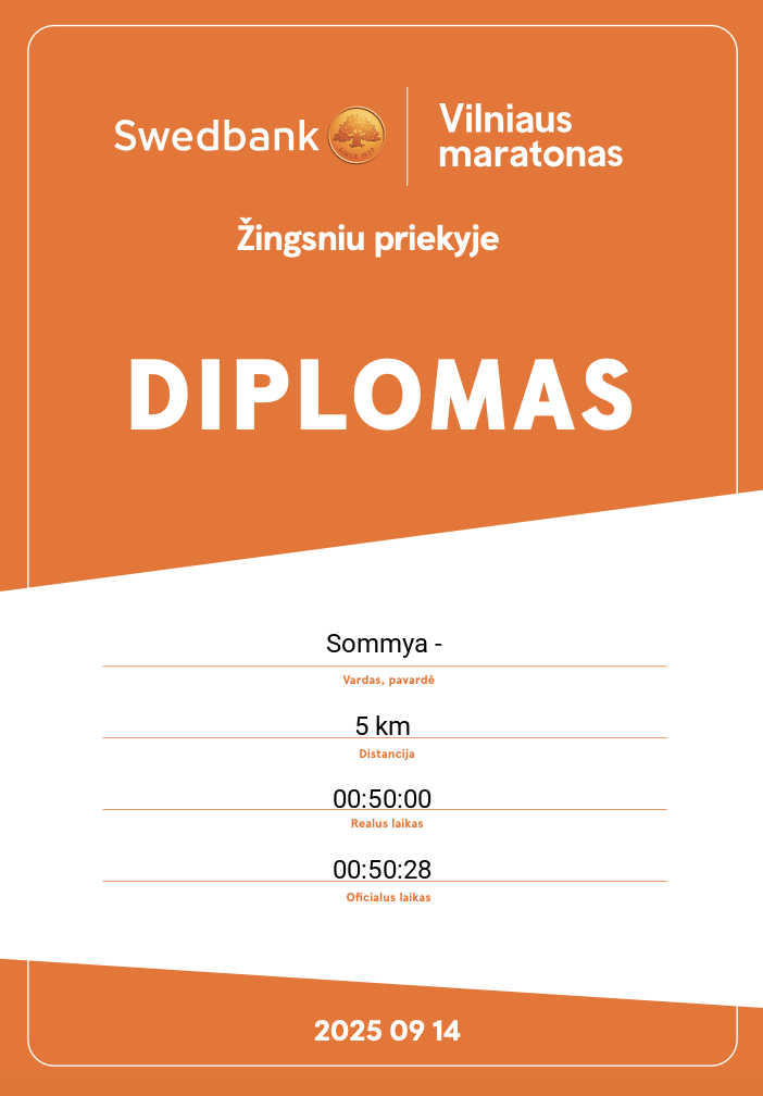 | 2742 | Sommya - | Accenture Lithuania | 32189 | Lithuania | 5 km | 00:50:28 | Diplomas |