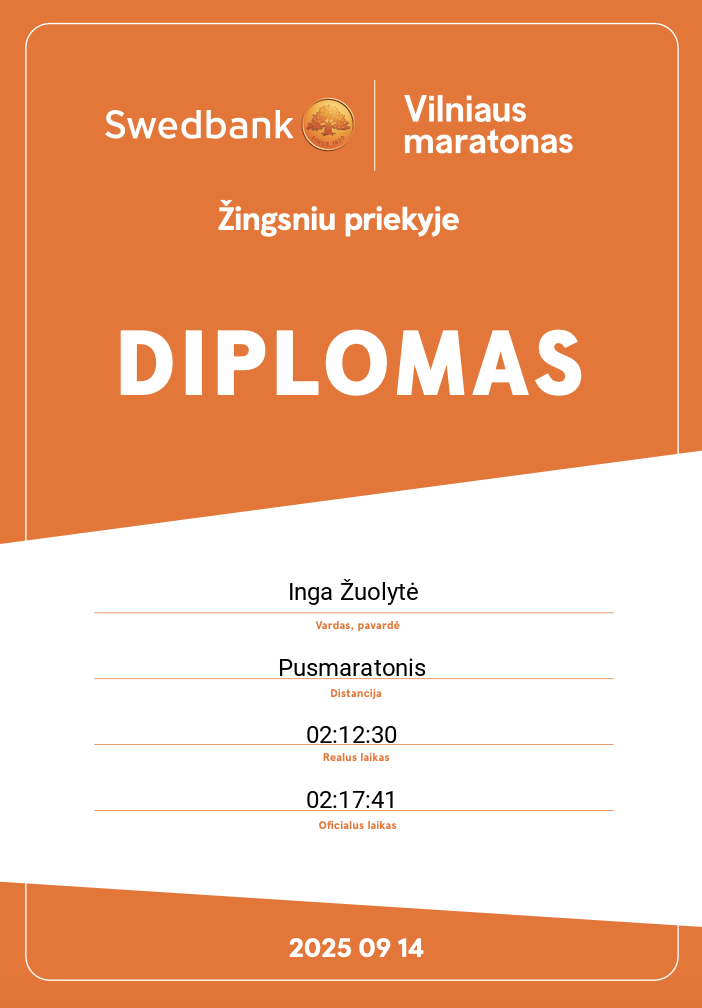 | 2379 | Inga Nair | 11439 | Lithuania | Pusmaratonis | 02:25:01 | Diplomas | |