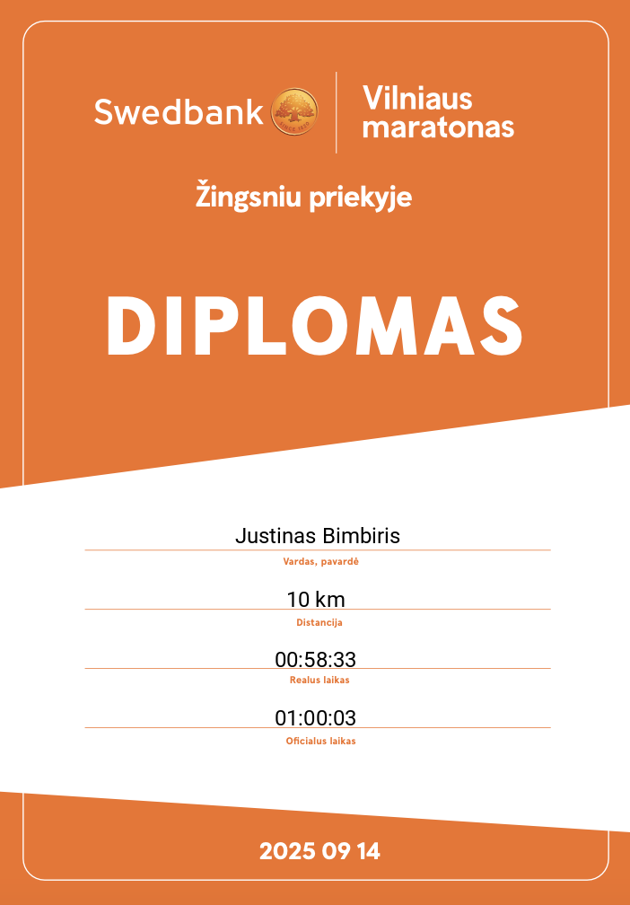 | 969 | Justinas Bimbiris | 22393 | Lithuania | 10 km | 01:00:03 | Diplomas | |