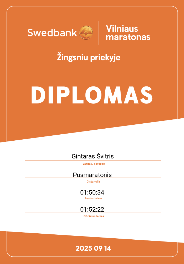 | 795 | Gintaras Švitris | Light Conversion | 12106 | Lithuania | Pusmaratonis | 01:52:22 | Diplomas |