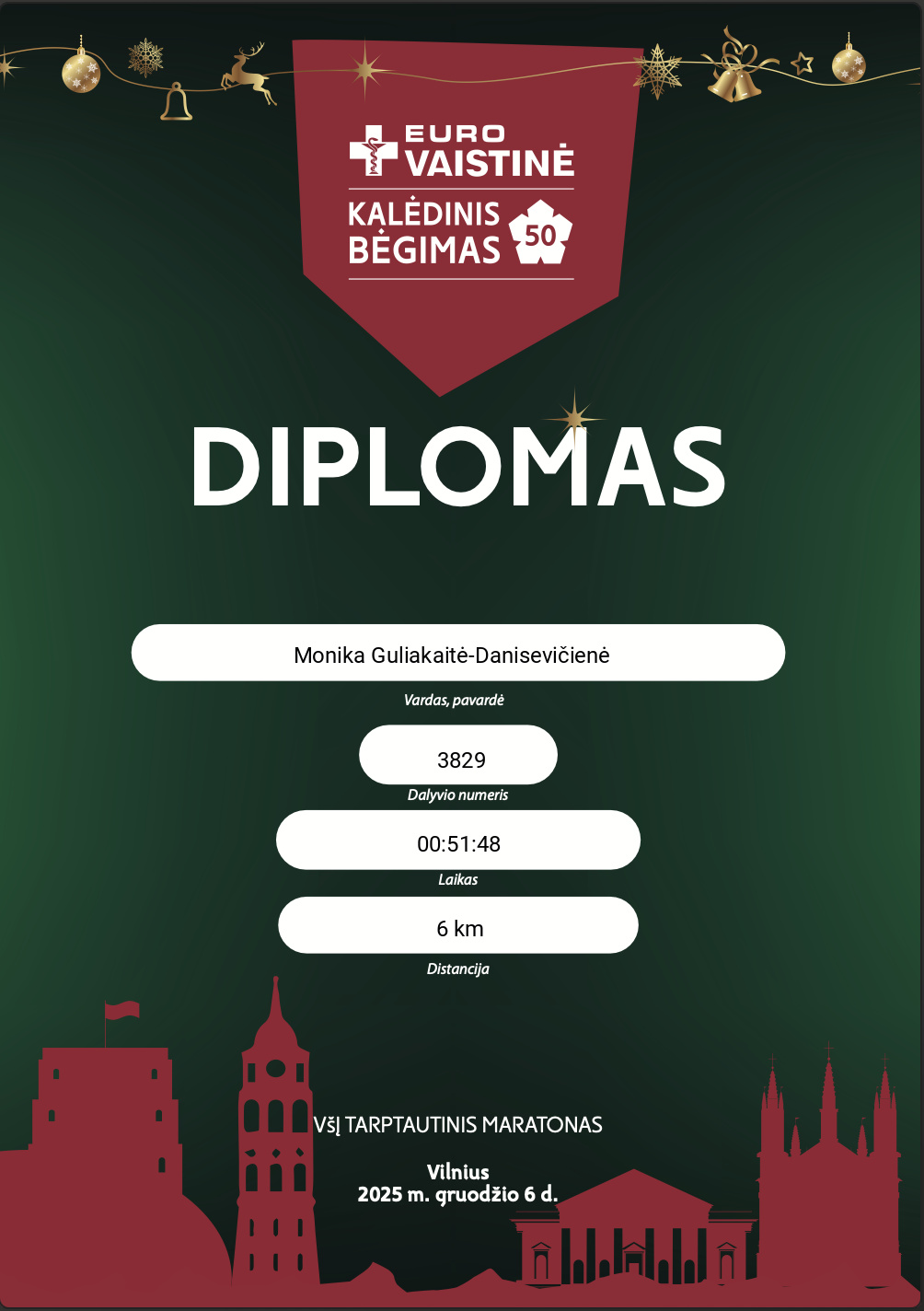 | 1229 | Monika Guliakaitė-Danisevičienė | 3829 | Lithuania | 6 km | 00:51:48 | Diplomas | |