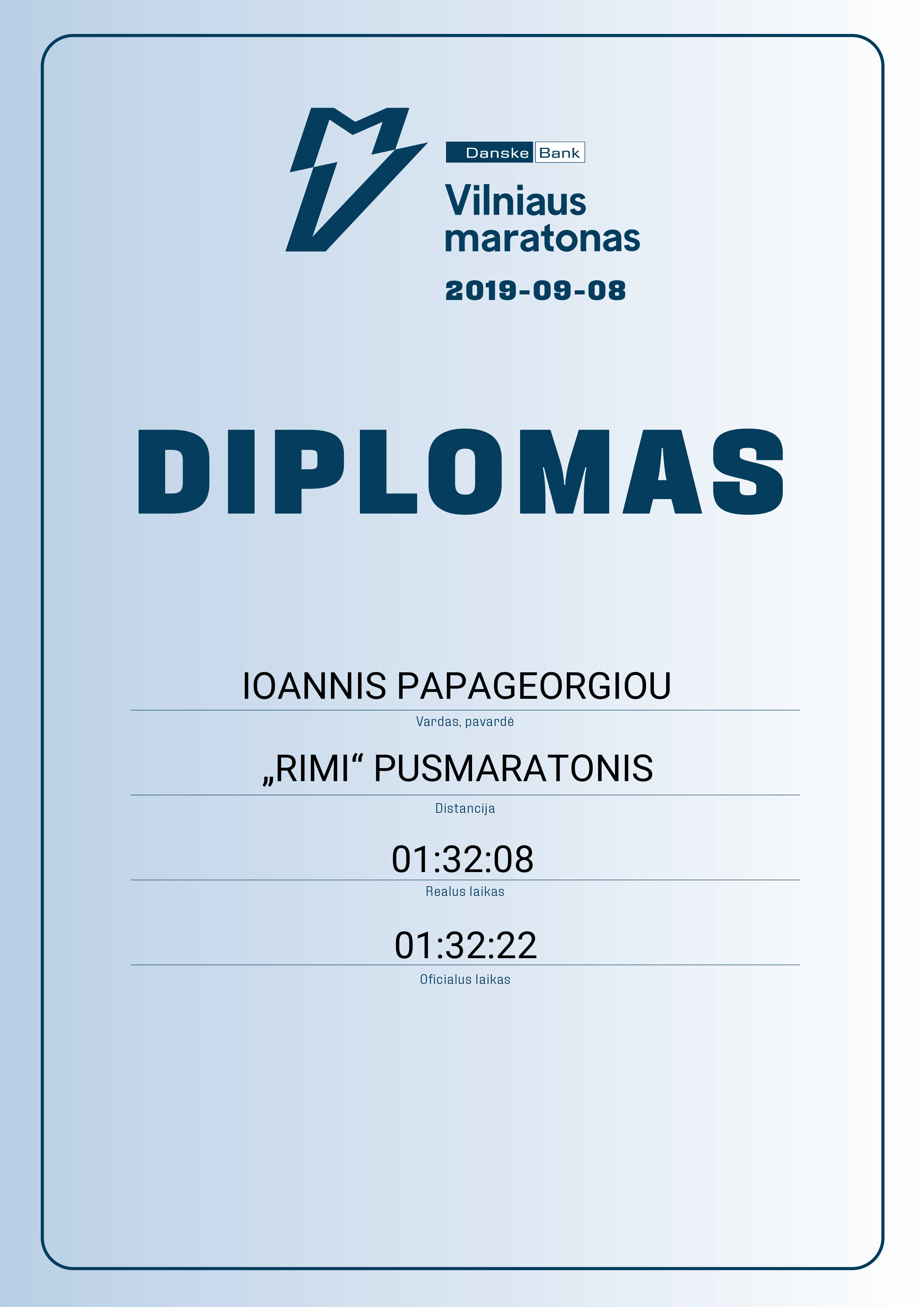 | 166 | IOANNIS PAPAGEORGIOU | 11174 | Greece | „RIMI“ PUSMARATONIS | 01:32:22 | Diplomas | |
