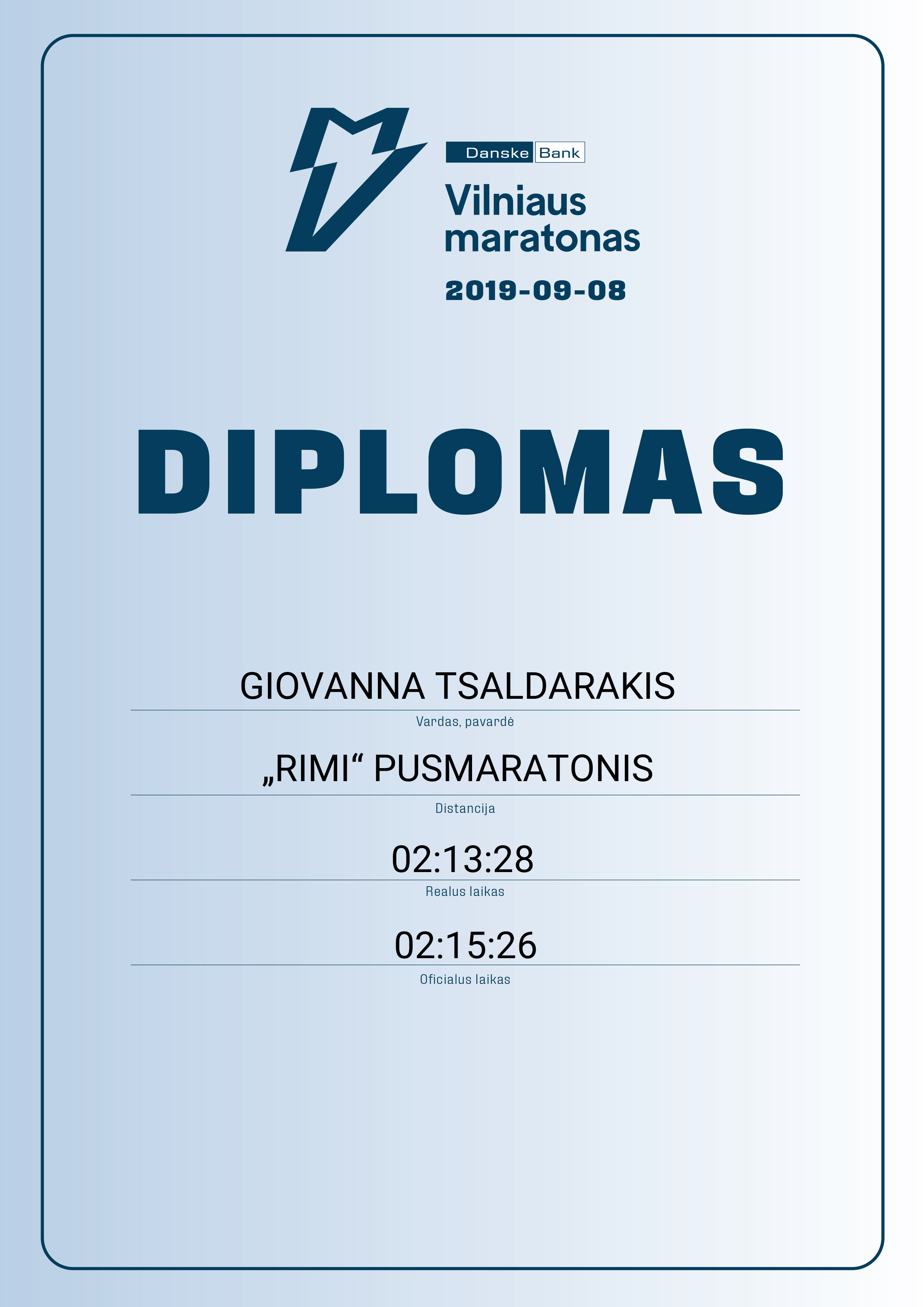 | 1672 | Iryna Khineika | 10432 | Italy | „RIMI“ PUSMARATONIS | 02:34:26 | Diplomas | |