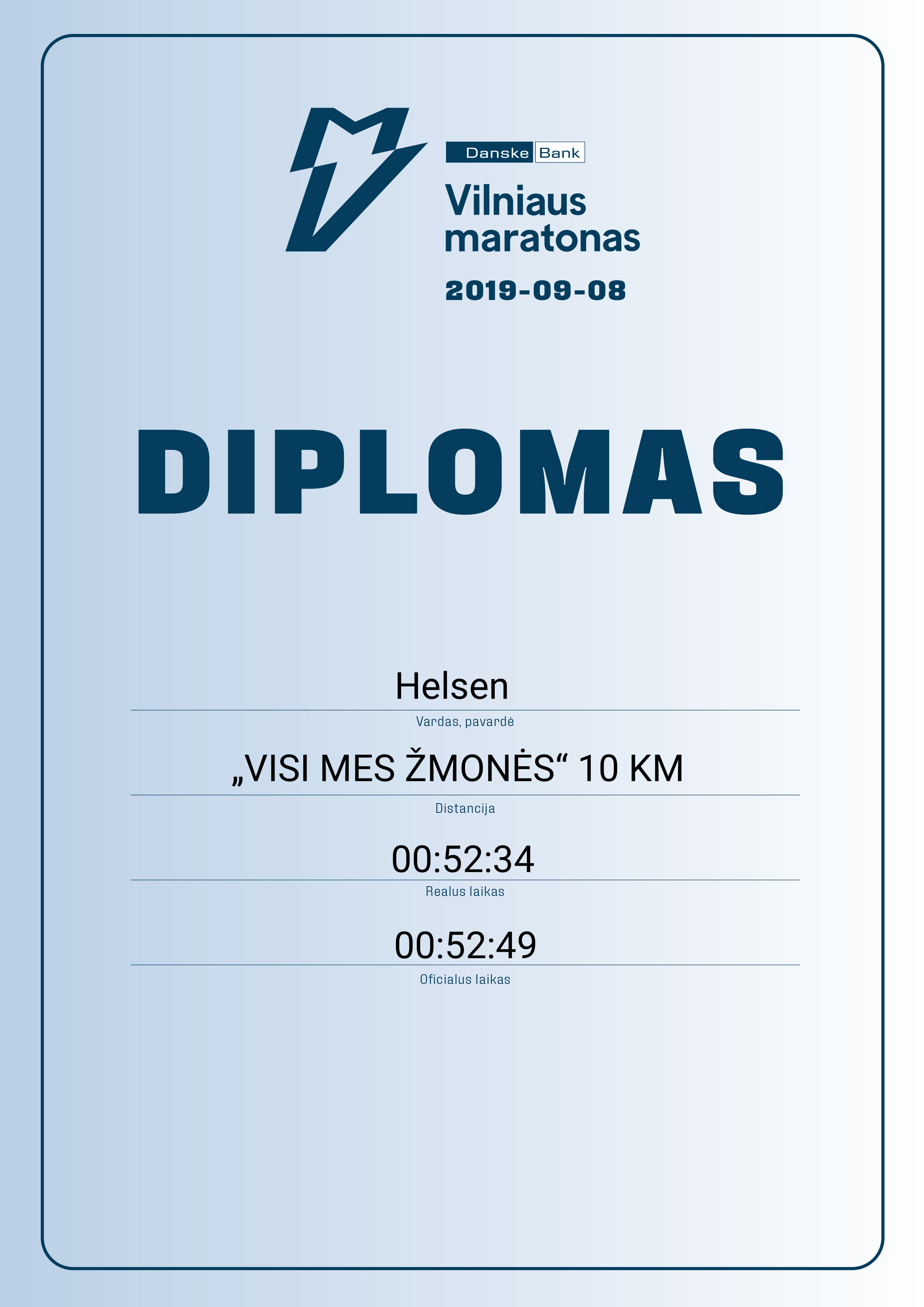 | 427 | Helsen | 22034 | Lithuania | „VISI MES ŽMONĖS“ 10 KM | 00:52:49 | Diplomas |