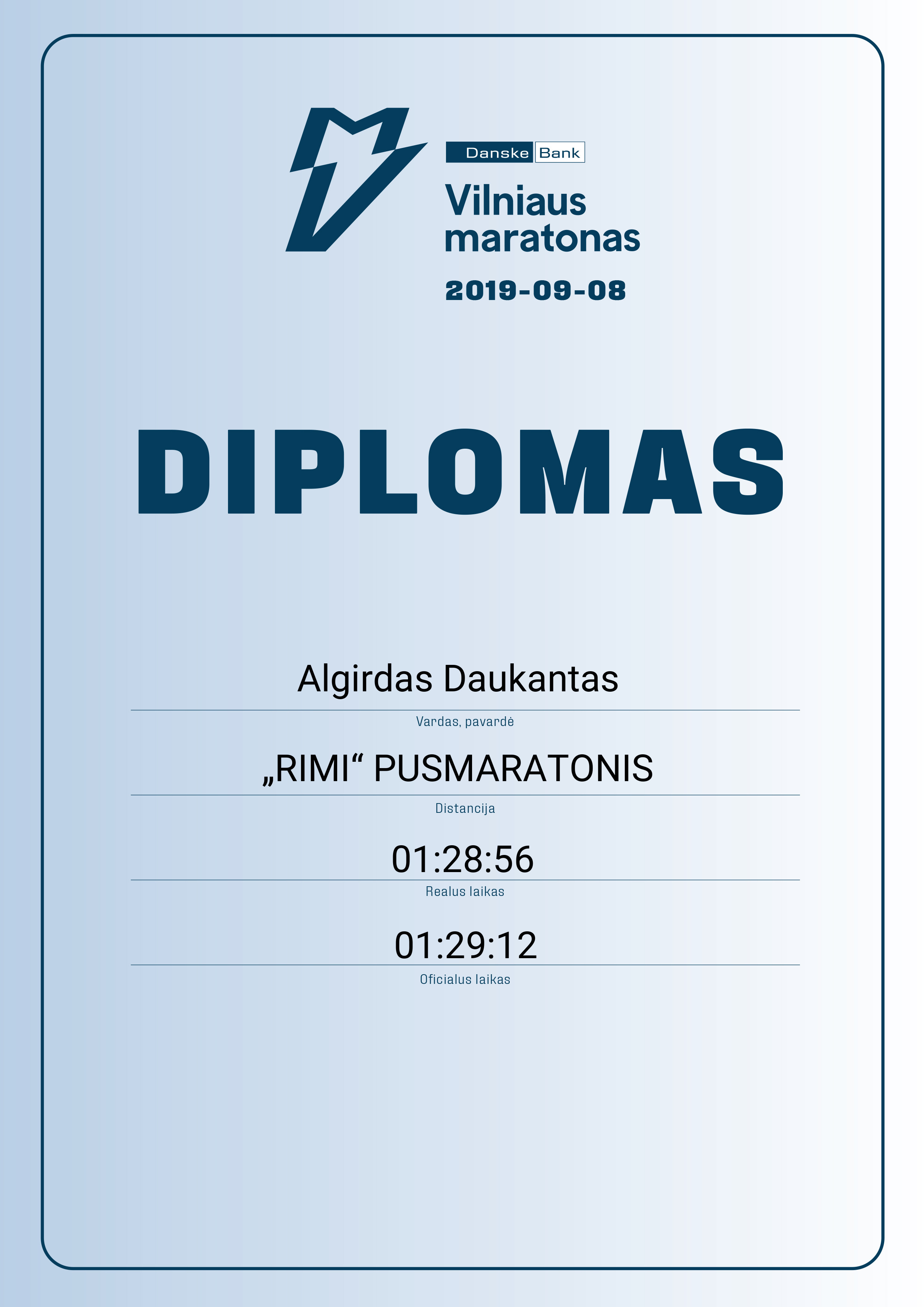 | 811 | Algirdas Vilys | 11136 | Lithuania | „RIMI“ PUSMARATONIS | 01:54:29 | Diplomas | |