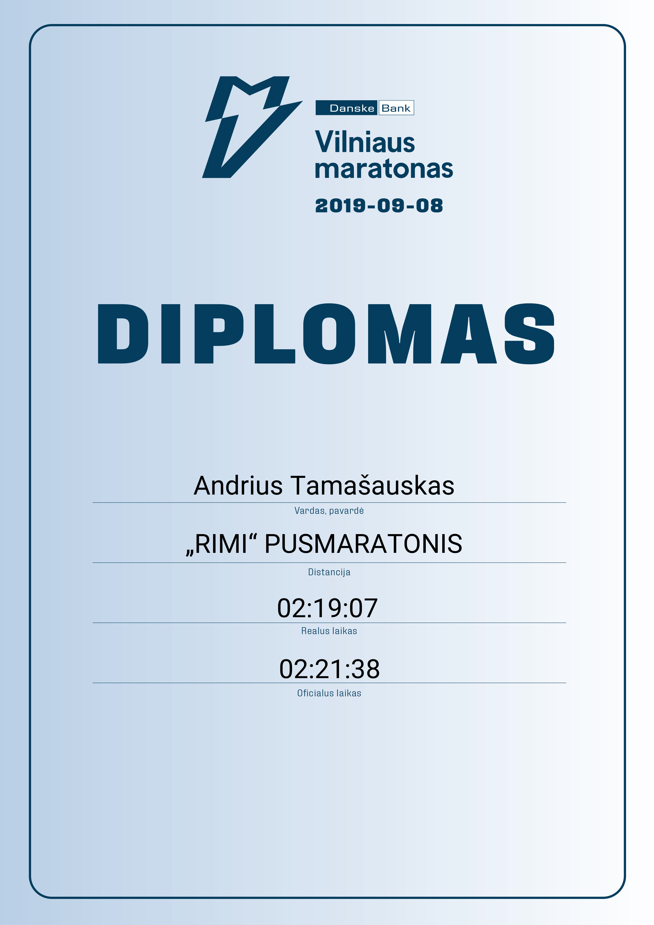 | 449 | ANDRIUS TIMOFEJEVAS | Danfoss | 12034 | Lithuania | „RIMI“ PUSMARATONIS | 01:44:40 | Diplomas |