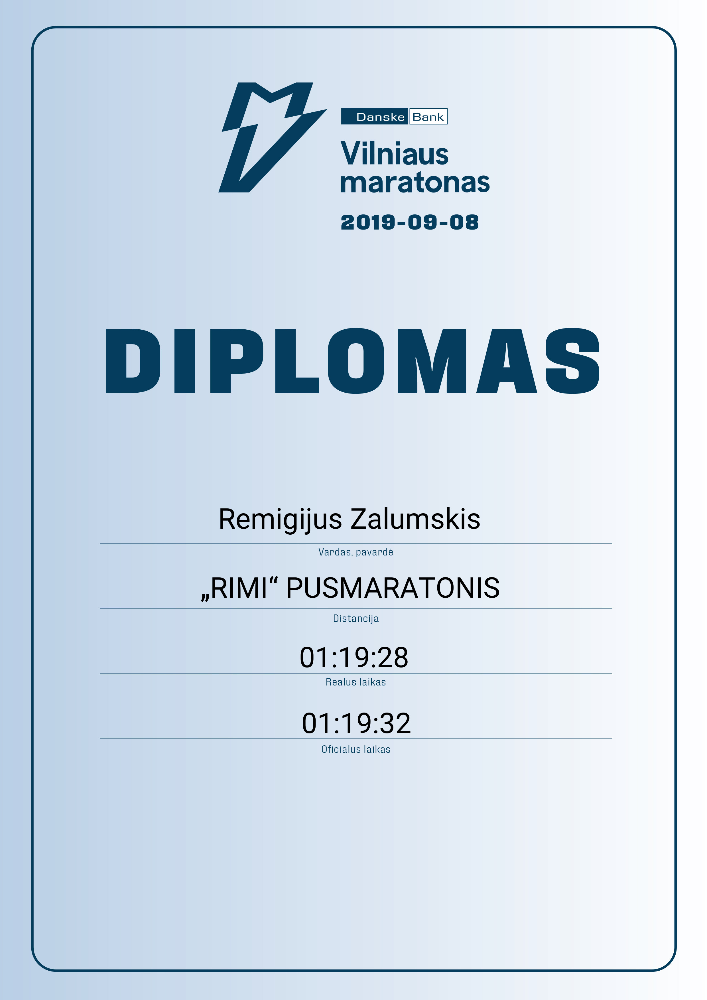 31 Remigijus Zalumskis TOP EXCHANGE 10552 Lithuania „RIMI“ PUSMARATONIS 01:19:32 01:19:28 00:37:31 Diplomas